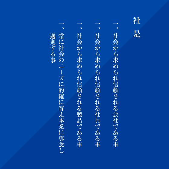 をモットーとし、日々「製品改良」、「技術改良」、「新しい材質」への挑戦を行ってまいりました。